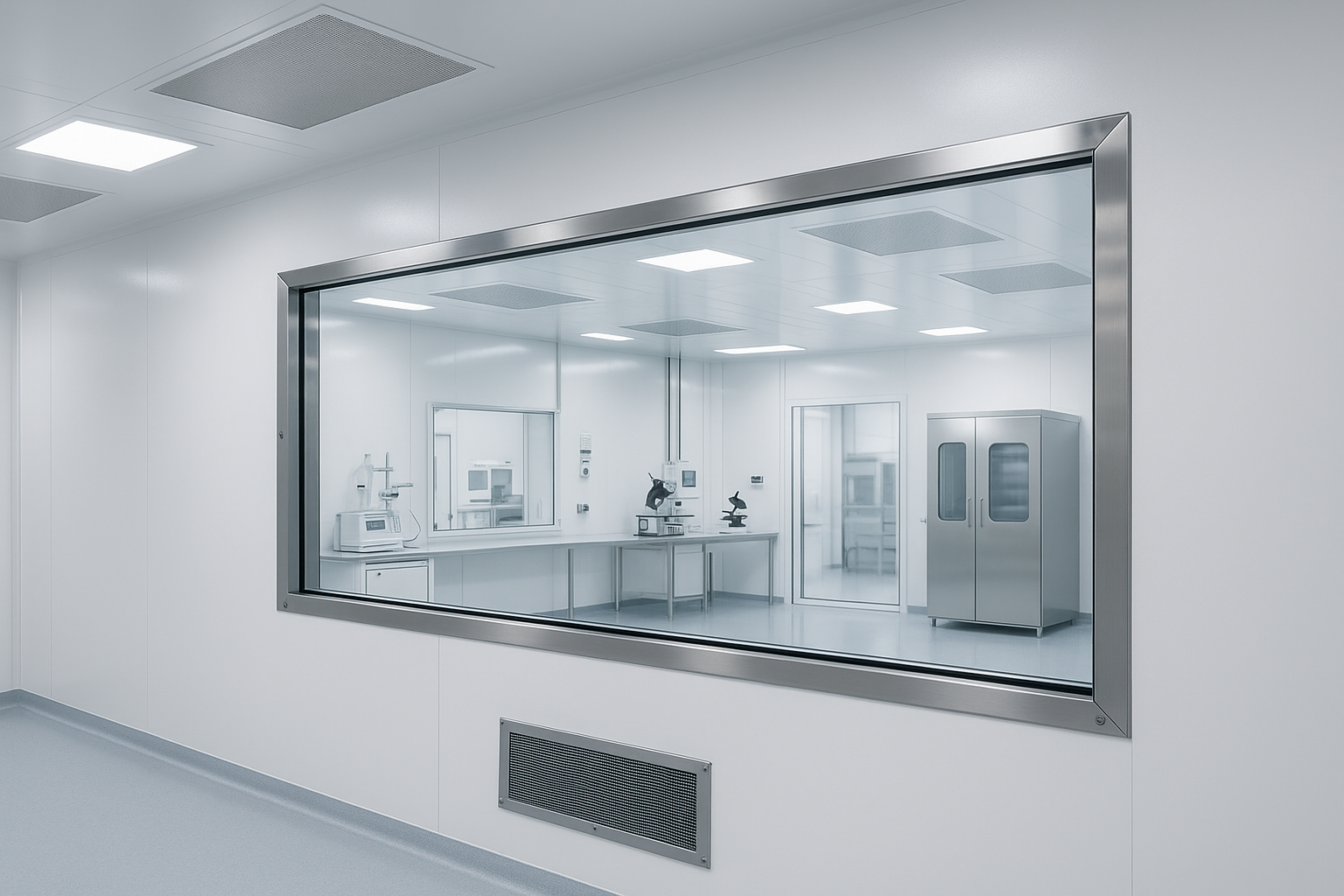 - Kompatibilita so susednými dverami alebo priečkami do čistých priestorov zaisťuje, že okná neohrozujú kontrolované prostredie.